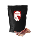De flesta hundgodisar börjar med en "blandning av animaliska produkter" – industriavfall, plus glycerin för konsistens, smakämnen för att ta bort dålig lukt, sirap för att ta bort dålig smak och konserveringsmedel för längre hållbarhet. Vårt sätt är annorlunda. Vi arbetar med samma leverantör som levererar kött till restauranger – inte fabriker. Bara 100 % kött, inga fyllnadsmedel, inga knep. För din hund förtjänar det du själv skulle välja – om du vore en fyrbent vän.